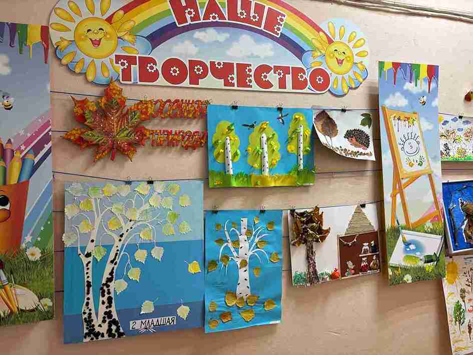 ![]() ![]() Говорят, что осень — унылая пора, но дети, как никто другой, способны радоваться золотистым опавшим листьям под ногами и дождику. Ребята нашего детского сада вместе с родителями побывали в роли художников и изобразили осень с помощью аппликации. Осень в детском саду — это всегда удивительные чудеса, волшебные краски и звонкий смех детей.